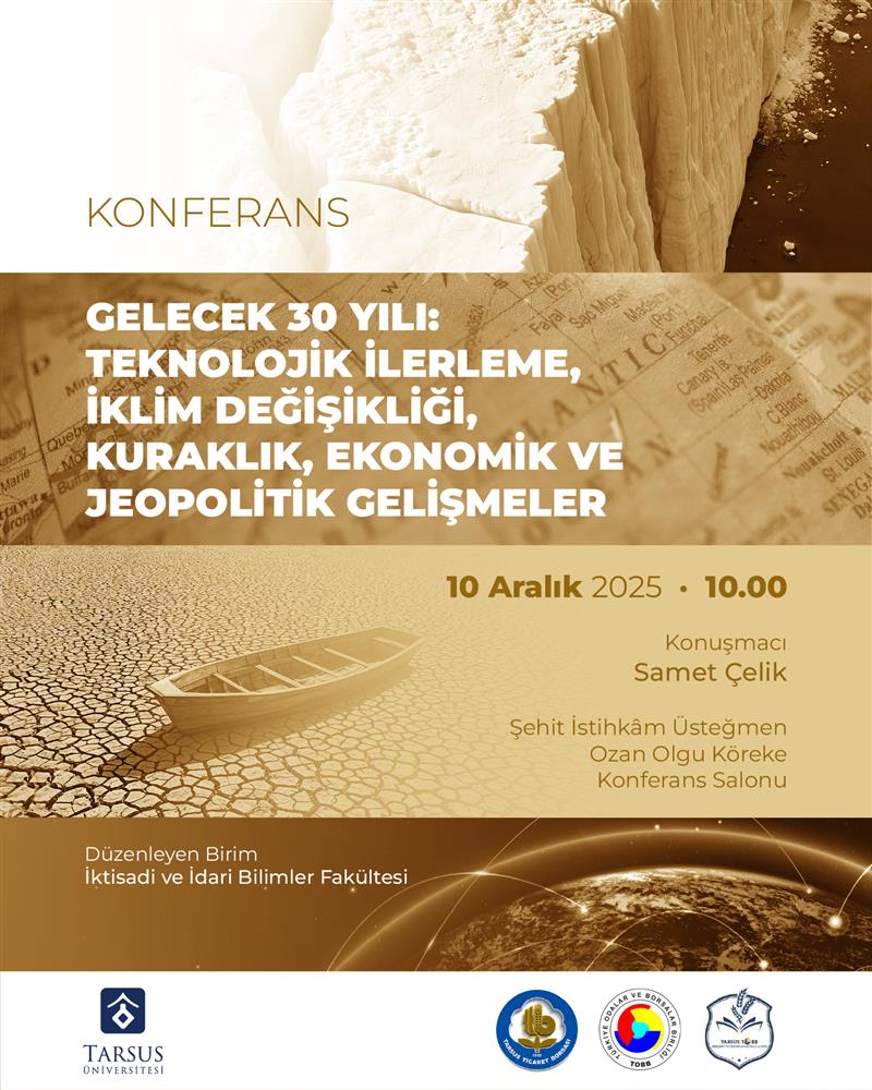 Tarsus Ticaret Borsası ile Birlikte Düzenlenecek "Gelecek 30 Yıl: Teknolojik İlerleme, İklim Değişikliği, Kuraklık, Ekonomik ve Jeopolitik Gelişmeler" Konferansı
