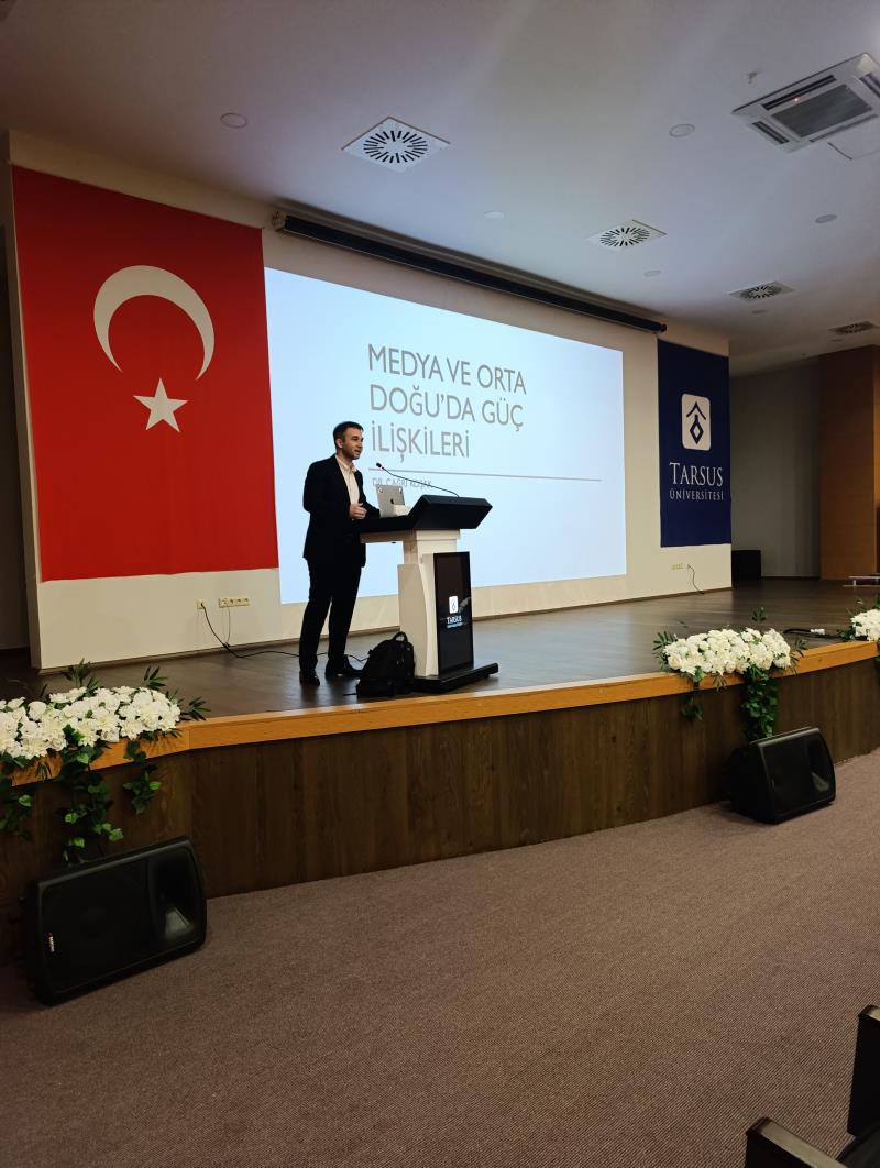 Tarsus Üniversitesi İktisadi ve İdari Bilimler Fakültesi tarafından düzenlenen “Medya ve Orta Doğu’da Güç İlişkileri” başlıklı konferans, 15 Aralık 2025 tarihinde Şehit İstihkâm Üsteğmen Ozan Olgu Köreke Konferans Salonu’nda gerçekleştirildi.