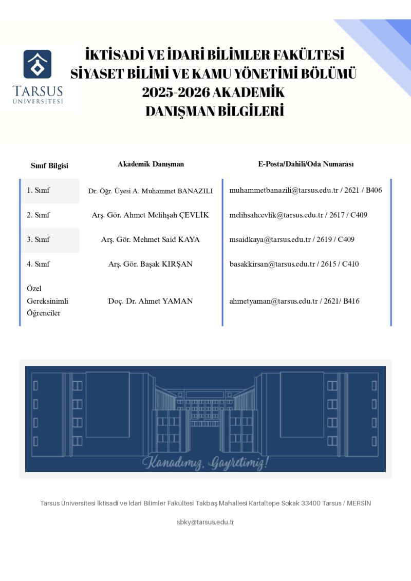 2025-2026 Eğitim-Öğretim Yılı akademik danışman bilgileri için tıklayınız.