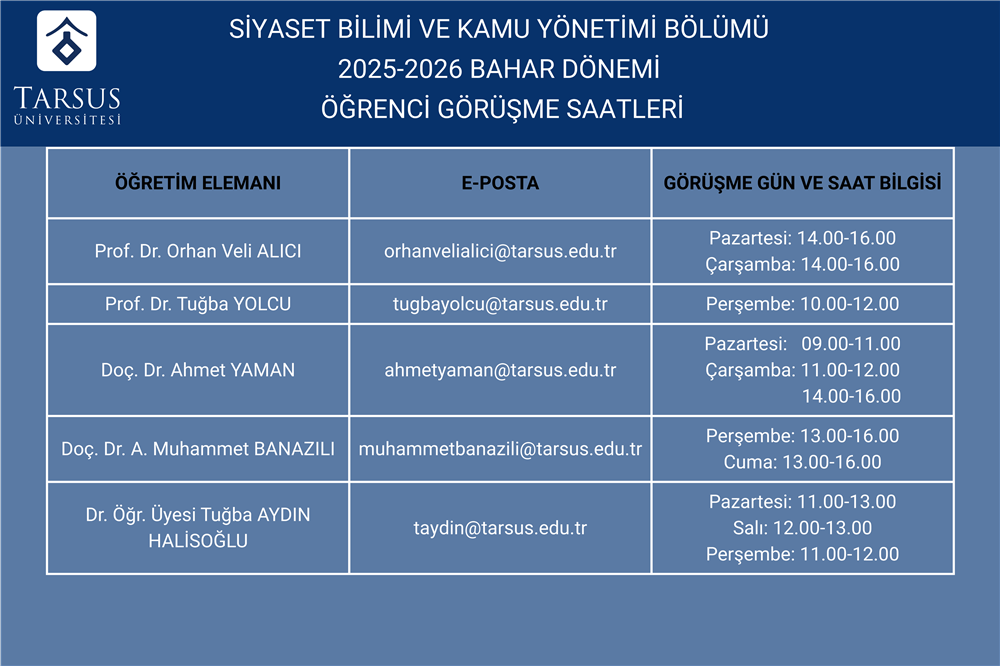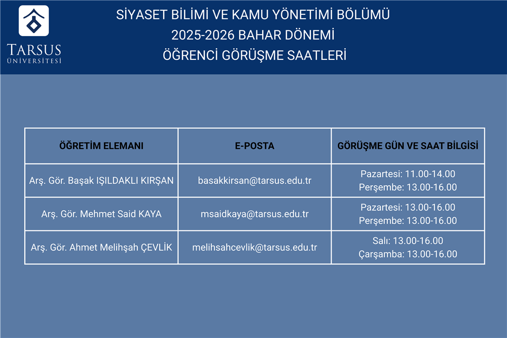 Öğrenci Görüşme Saatleri